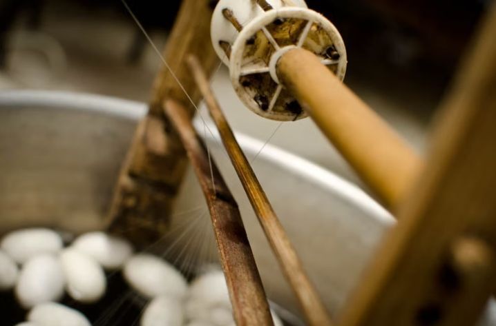 Размотка коконов – технологический процесс в шелководстве, при котором из кокона тутового шелкопряда (Bombyx mori) получают непрерывную шелковую нить. После термической обработки коконы разматывают, соединяя нити от нескольких коконов для повышения прочности. Из одного кокона получают 600-900 метров нити (при максимально возможной длине до 1500 метров), которая далее используется для производства высококачественного натурального шелка.